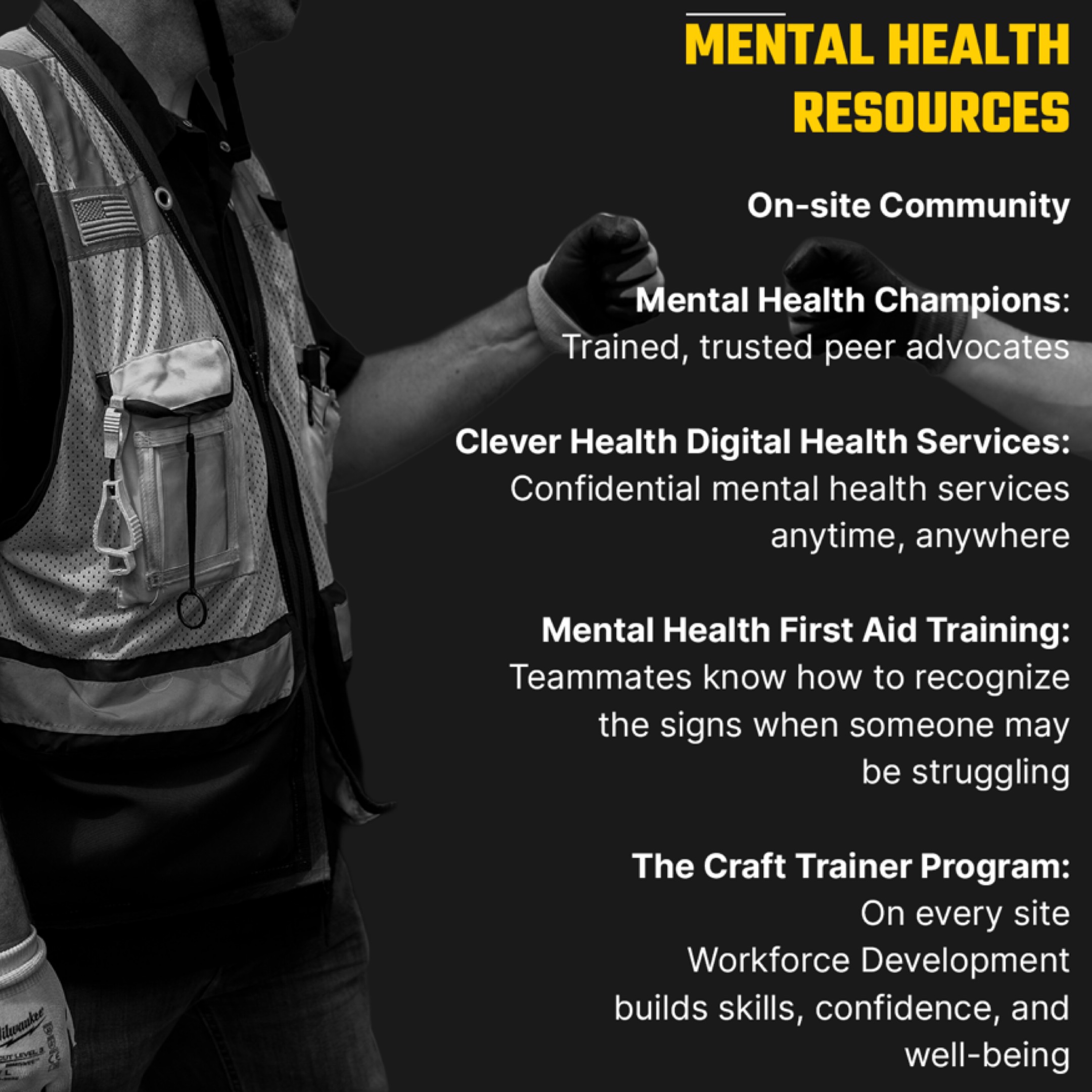 Mental health is just as critical as physical safety. We’re building a culture where conversations about stress and well-being are as normal as talking about fall protection.
